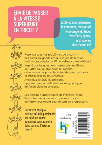 Inspiré parles questions posées par ses élèves, Patty Lyons, propose dans cet ouvrage des tutoriels pourtricoteurs et tricoteuses de tous niveaux. Avec plus de 200 illustrations, les fans de tricotapprendront de nouvelles techniques pas à pas de façon claire et efficace tout en s’amusant avecles dessins humoristiques de Franklin Habit.