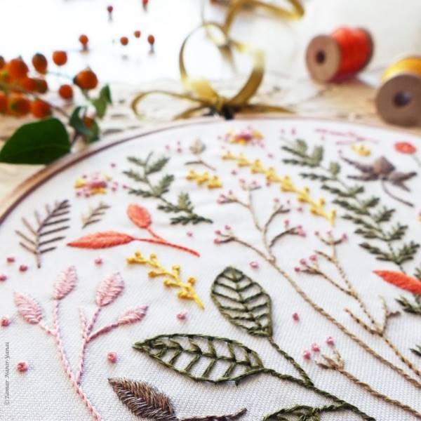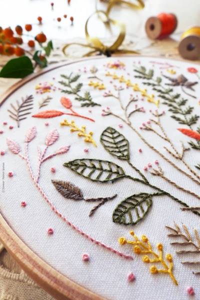 AUTUMN LEAVES - KIT BRODERIE 21X21CM - TAMBOUR NON INCLUS - TAMAR NY