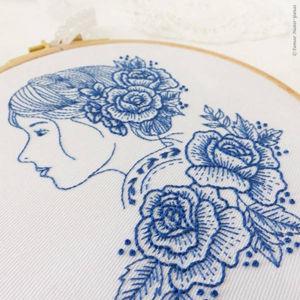BLUE ROSE LADY - KIT BRODERIE 21X21CM - TAMBOUR NON INCLUS - TAMAR NY