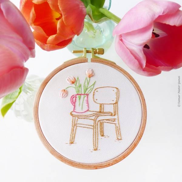 CHAIR AND TULIPS - KIT BRODERIE 16X16CM - TAMBOUR NON INCLUS-TAMAR NY