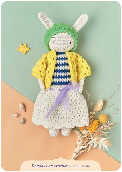 Caro Tricote a imaginé son premier univers d'amigurumis à crocheter ! Elle vous a préparé deux doudous, un ours et un lapin, dans l'esprit bucolique d'une belle journée ensoleillée en bord de rivière. Que vous les habillez d'une salopette ou d'une élégante jupe à volants, les doudous vivront des heures d'aventure entre les mains des jeunes enfants.