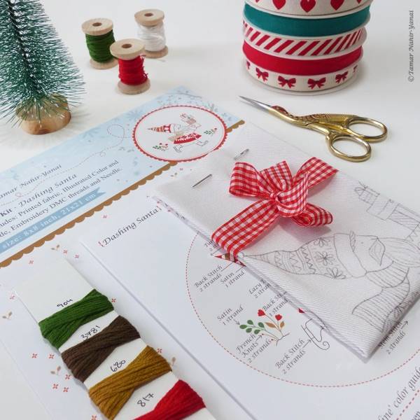 DASHING SANTA - KIT BRODERIE 21X21CM - TAMBOUR NON INCLUS - TAMAR NY