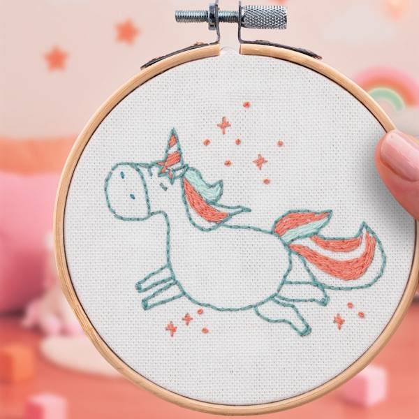Découvrez le kit de broderie "Licorne féerique", qui illumine par son esprit magique. Elle incarne les rêves, la fantaisie et l’imaginaire des enfants. Un motif enchanteur qui invite à croire en la magie et à décorer la chambre avec poésie.
