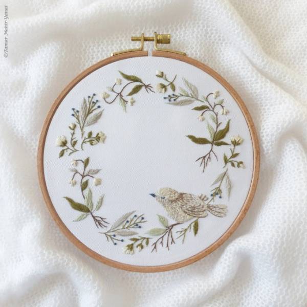 BIRD & WREATH - KIT BRODERIE 21X21CM - TAMBOUR NON INCLUS - TAMAR NY