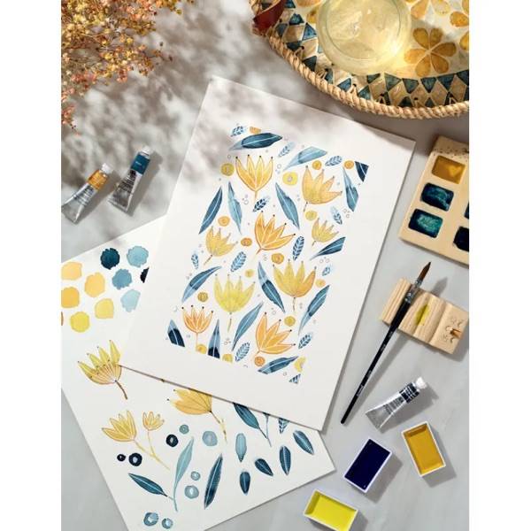 Artiste reconnue à l’international, son auteure Kate Rebecca Leach d’Essoldo Design vous initie à l’aquarelle abstraite. Après vous avoir expliqué les bases de l’aquarelle, elle vous invite à vous amuser. Comment ? En expérimentant les textures, les formes et les couleurs pour créer des œuvres d’art uniques avec des fusions chromatiques inattendues, des auréoles texturées et d’autres effets étonnants… Suivez ce guide pratique pour réaliser une quinzaine de projets variés avec des motifs simples, des paysages expressifs ou des plantes stylisées, tous détaillés en pas à pas.