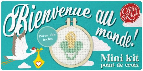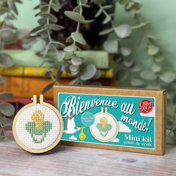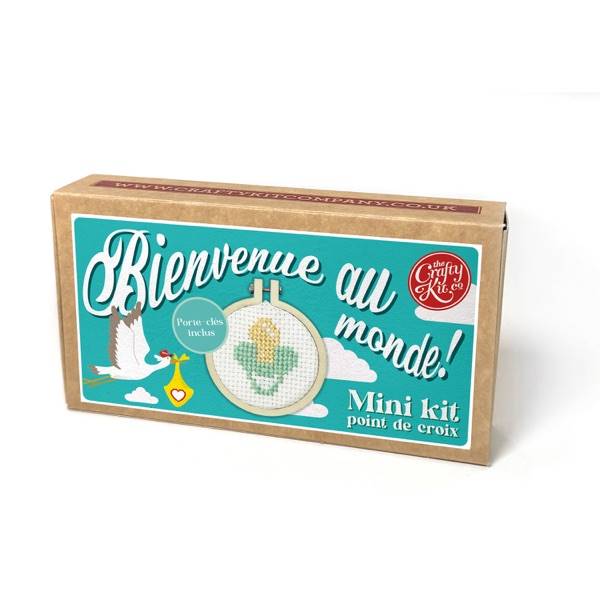 MINI KIT POINT DE CROIX - BIENVENUE AU MONDE ! - TURQUOISE