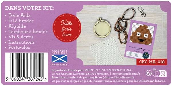 Ce mini kit de point de croix, fabriqué en Écosse, est présenté dans un format boîte d’allumettes au design amusant et moderne. Le coffret contient tout le nécessaire pour broder un motif sur tambour de 5 cm, avec porte-clés inclus !
