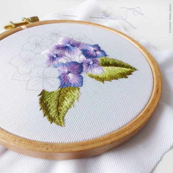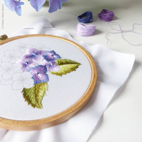MINI PURPLE HORTENSIA-KIT BRODERIE 16X16CM-TAMBOUR NON INCLUS-TAMAR