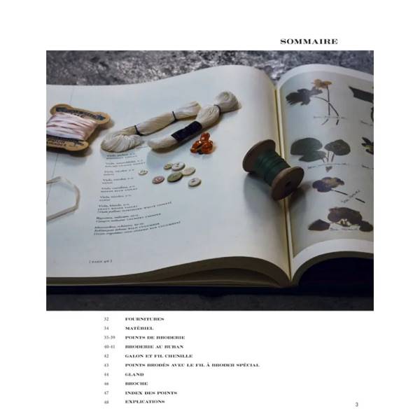 En effet, il aborde une large palette de points (du plus basique au plus complexe/rare), de techniques (broderie traditionnelle, broderie au ruban)…