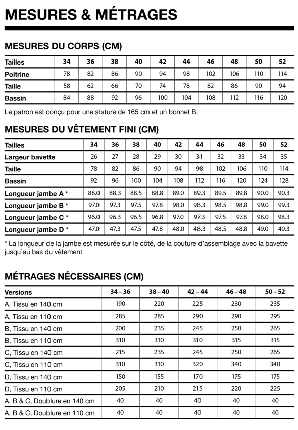 Taille 36 au 46. Voir tableau des mesures ci-dessous.