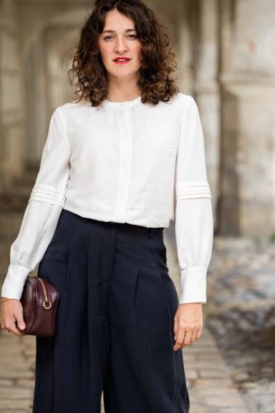 Je suis Pearl, un chemisier que vous pouvez créer en 36 versions différentes. J’ai été conçu pour offrir plusieurs options de style, tout en restant facile à adapter à vos envies.