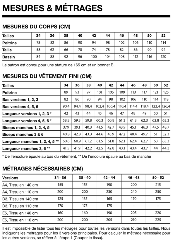 Taille 36 au 46. Voir tableau des mesures ci-dessous.