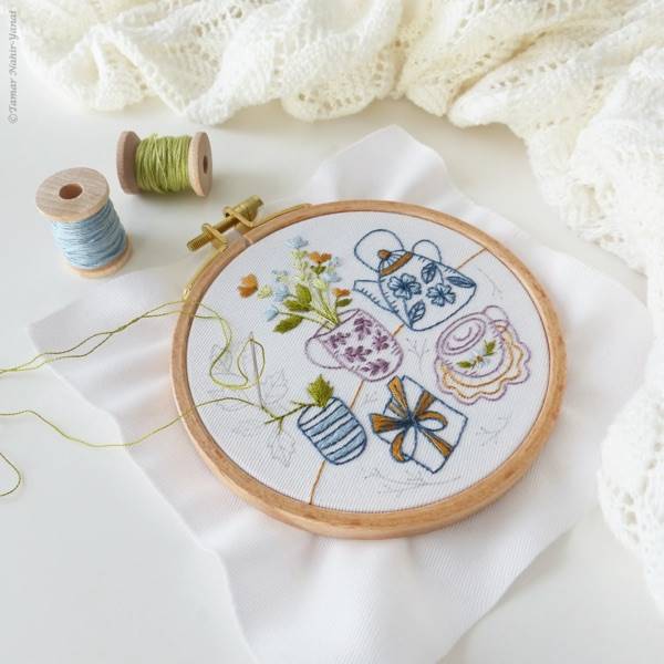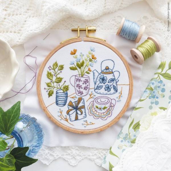 TEA PARTY - KIT BRODERIE 16X16CM - TAMBOUR NON INCLUS - TAMAR NY