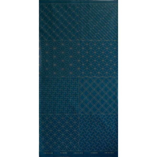 TISSU SASHIKO IMPRIME - 110 CM - COTON - 9 PANNEAUX - COL 19 INDIGO
