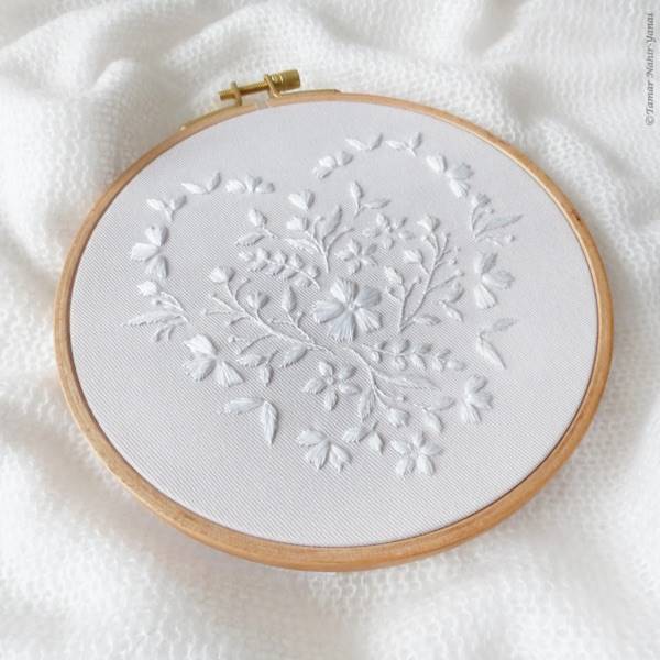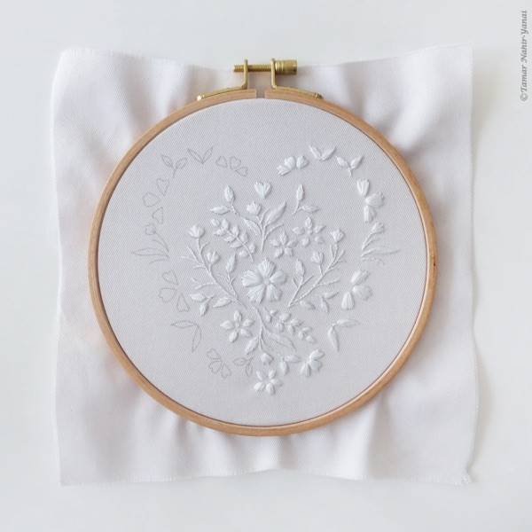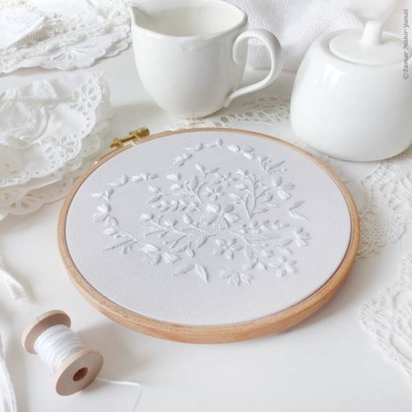 WHITE HEART - KIT BRODERIE 21X21CM - TAMBOUR NON INCLUS - TAMAR NY