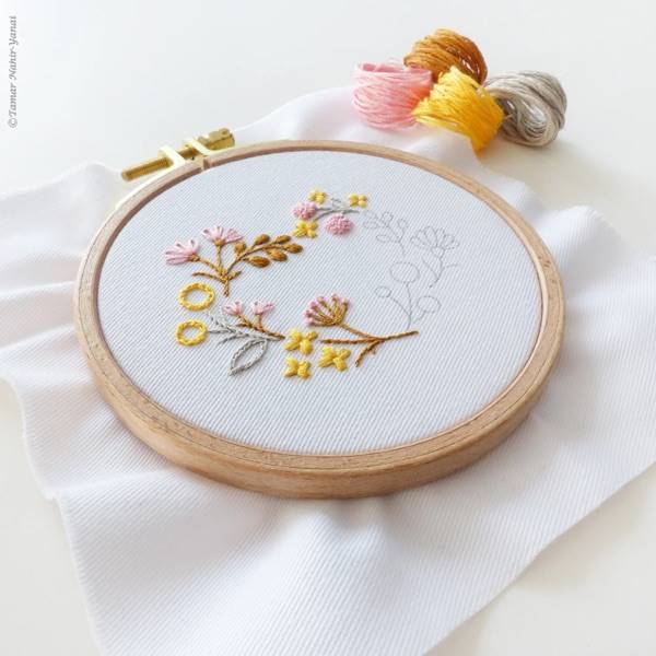 YELLOW PINK FLOWERS -KIT BRODERIE 16X16CM-TAMBOUR NON INCLUS-TAMAR NY